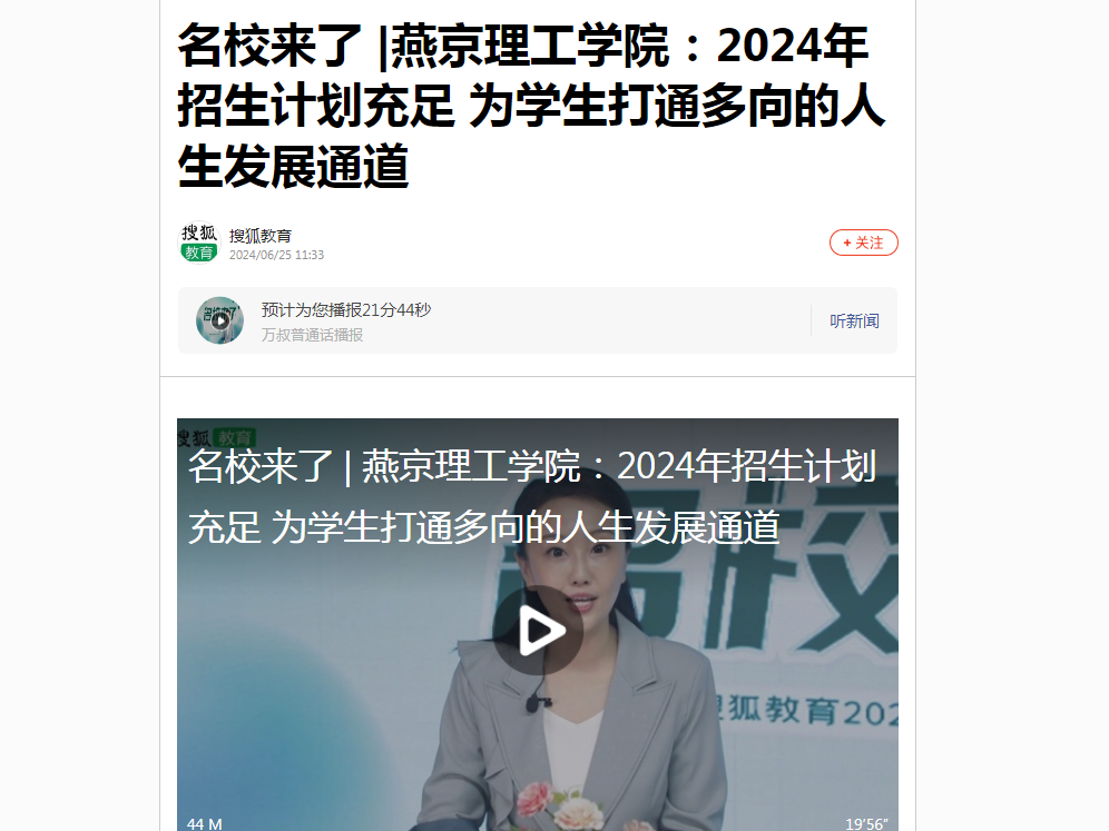 看点:在2024年高招季,搜狐邀请全国百所高校“发言人”做客搜狐教育“名校来了”高招访谈,通过视频、直播等形式详解高校招生政策、特色专业及录取规则,...