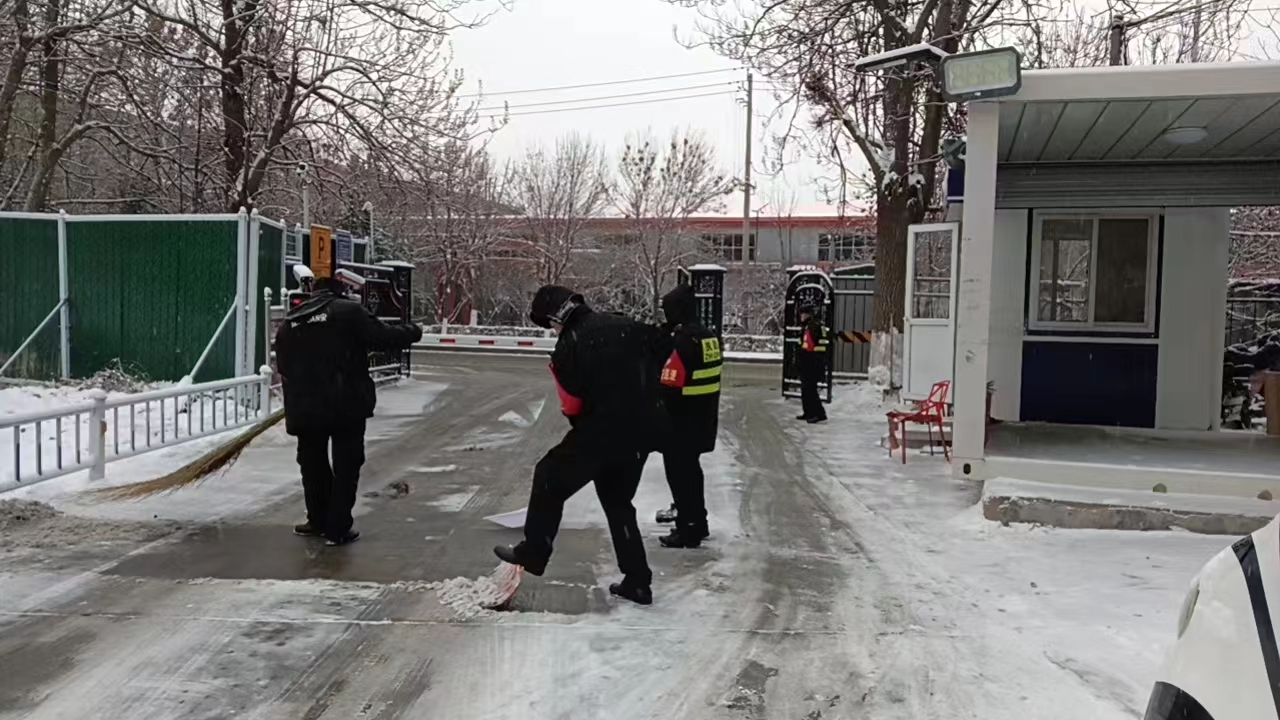 12月11日凌晨,2023年冬天的第一场雪悄然而至,为美丽的校园披上银白色的外衣。学校各门口路面湿滑,为确保教职工出行安全和道路畅通,安全处全体工作人员不顾天气严寒和地面湿滑,及时清扫各校门口积雪,保障了道路通畅,并提醒进校车辆减速慢性注意行车安全。此次扫雪除冰行动在给老师、同学们带来安全便利的同时,也体现了安全处工作人员不畏严寒、不顾辛劳,以实际行动展示了学校安全保卫人员的良好精神风貌。