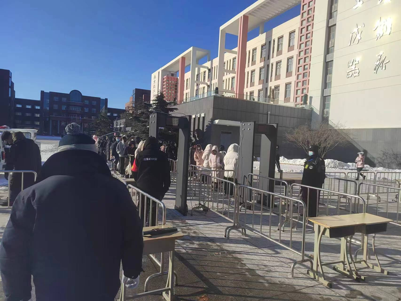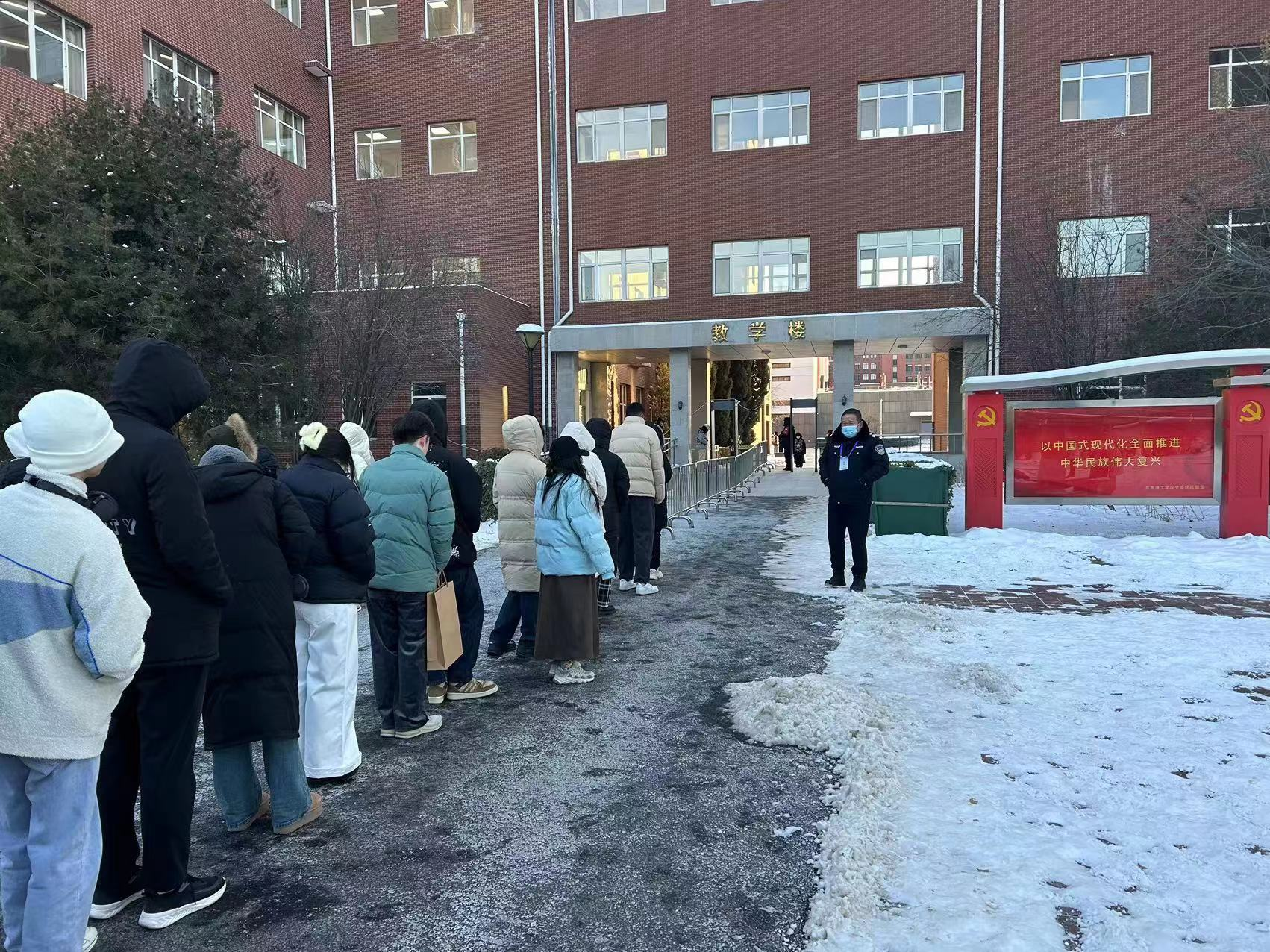 在将近零下20度的天气里,安全处严格按照考试安保方案要求,不畏严寒,坚守岗位,履行职责,认真做好考场警戒线设置,身份证件查验,有序疏导考生进场,防止出现人员拥堵现象。同时加强考场周边安全巡逻,较好维护了考试期间安全秩序,保障了此次全国大学生四六级考试的顺利进行。