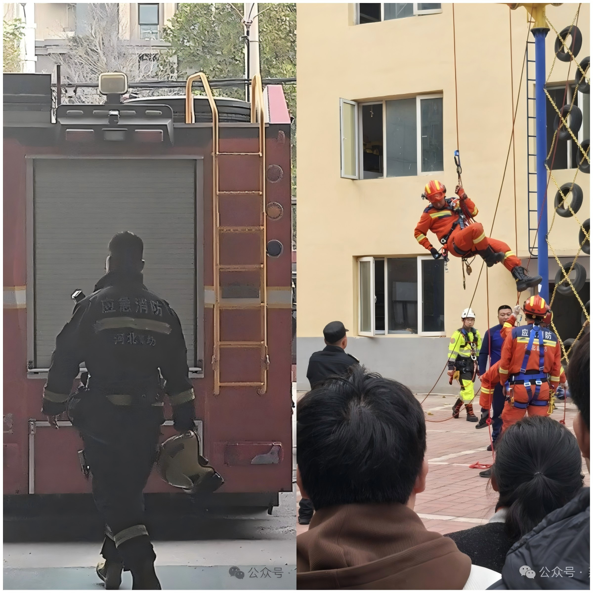 随后,师生们走进了消防员训练场,观看了消防员们的日常训练。他们动作迅速、操作熟练,在模拟火灾现场中展现出了高超的灭火技能和救援能力。他们的专注与专业深深震撼着在场的每一个人,赢得了师生们由衷的敬意与钦佩。这不仅是一次知识的传递,更是一种精神的传承,让师生们深切体会到消防工作背后所承载的责任与使命。