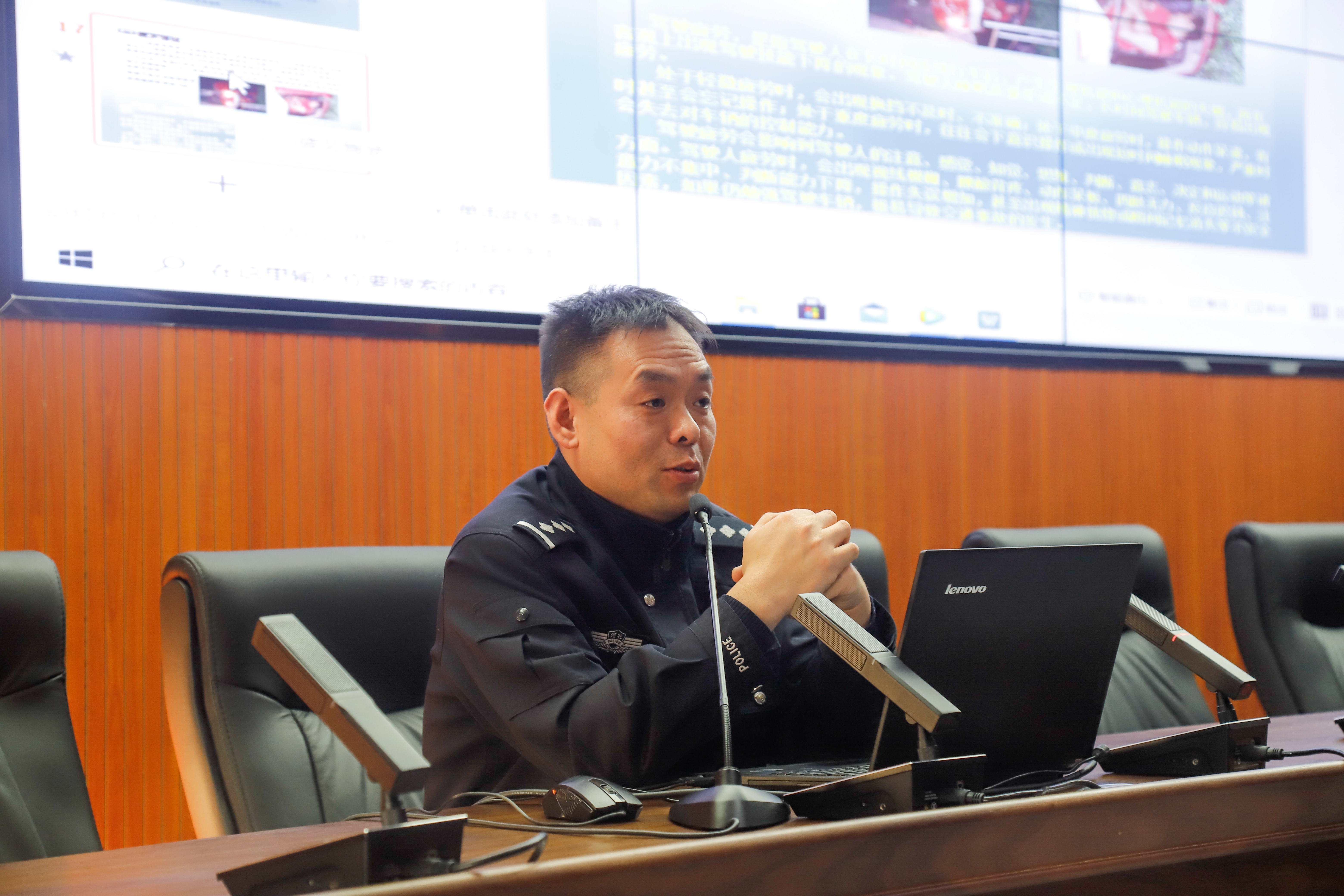 为进一步增强师生员工的交通安全意识,提高安全驾驶能力,12月2日下午,燕京理工学院交通安全知识培训在综合楼525会议室举行,三河市交警大队宣传科陈海生科长,安全处、后勤资产处负责人,专职司机、各单位驾驶员代表等120余人参加了此次培训。