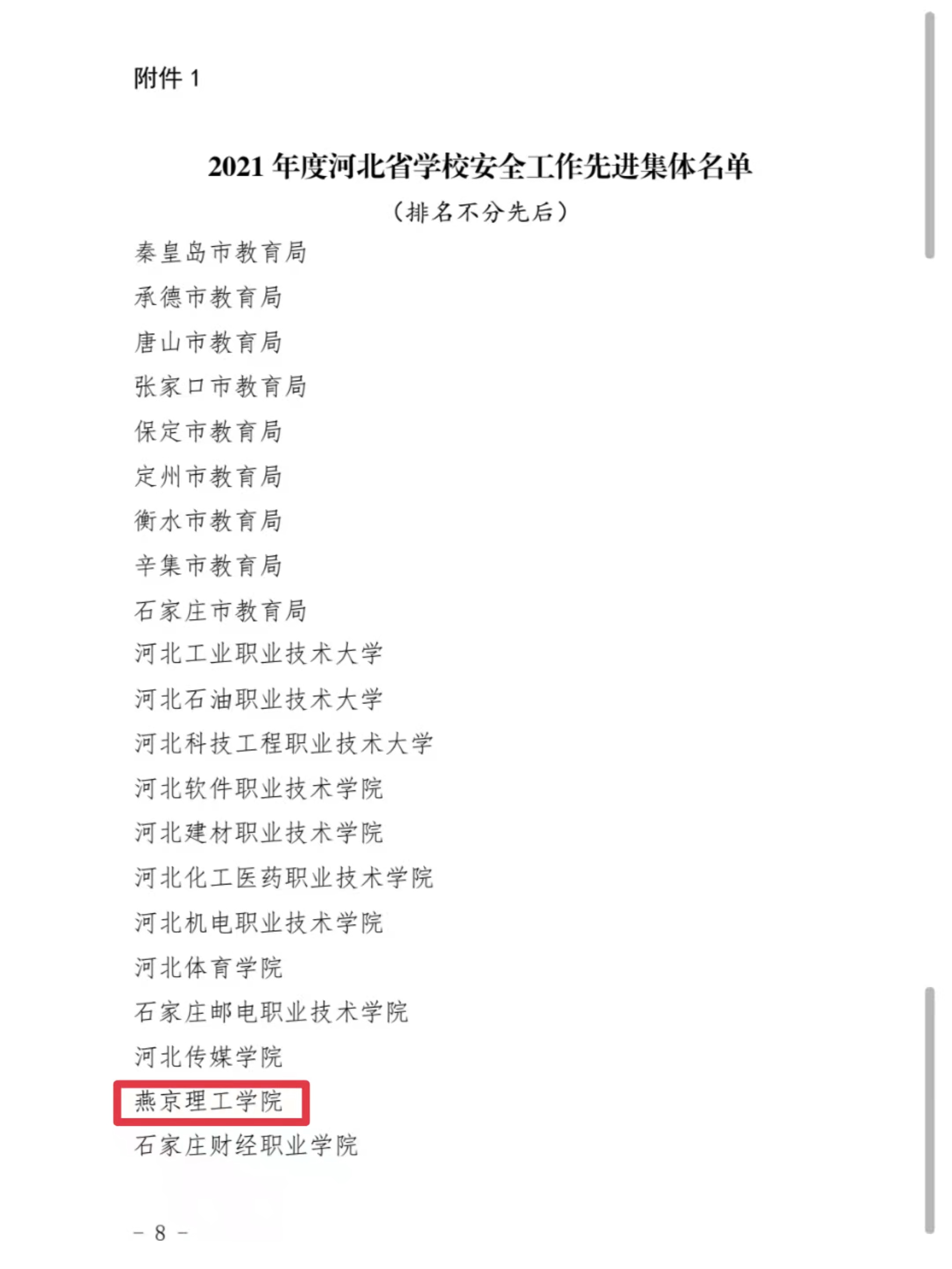 燕京理工学院荣获“2021年度河北省学校安全工作先进集体”称号