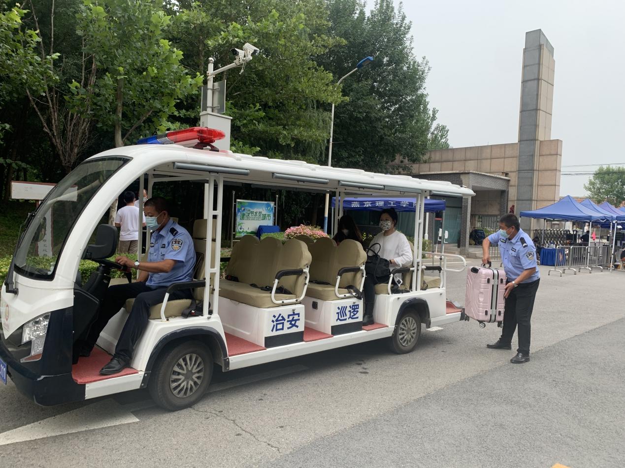 安全处还为返校学生们拉运行李,帮助他们搬运到车上,虽已入秋,但天气依然很闷热, 同学们坐上车,掩盖不住兴奋喜悦的心情:“这车真牛,不但让我少走好些路,最主要的是太凉快了,还能观看校园美景,真是太谢谢你们啦”!