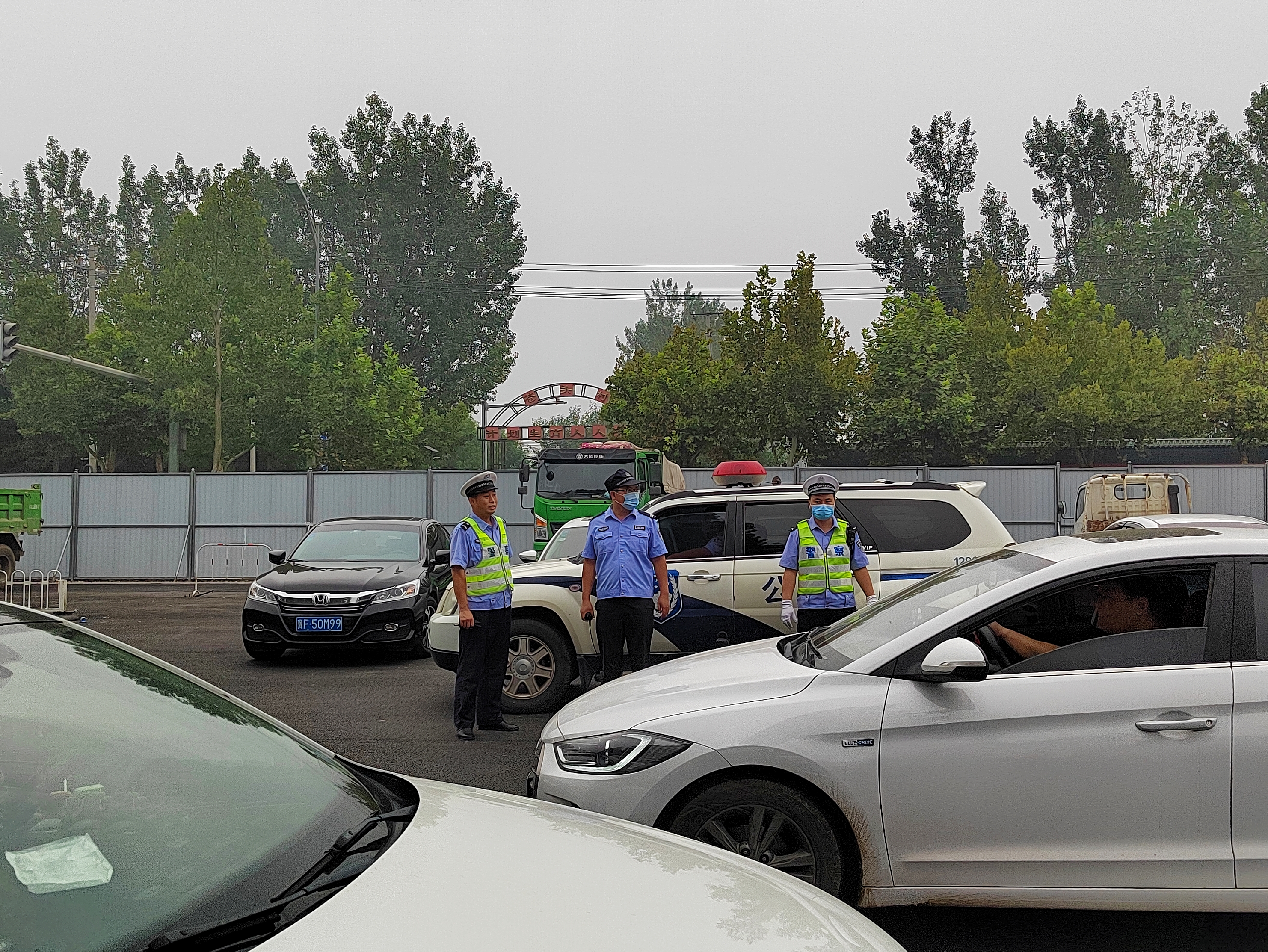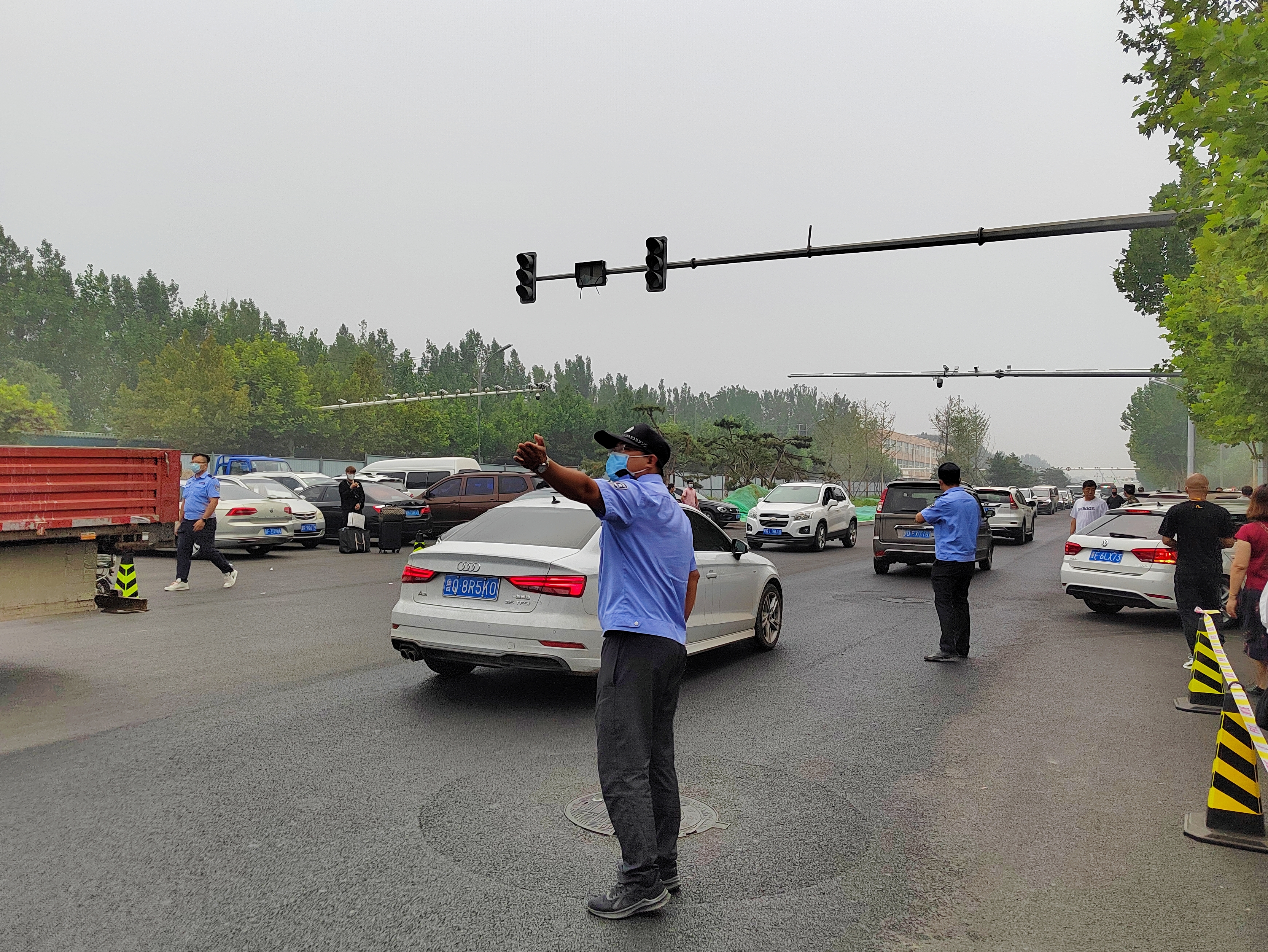 安保人员在学校东门指挥疏导家长车辆