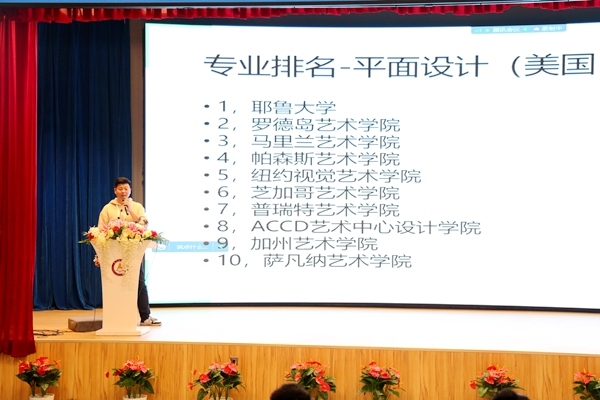 董老师毕业于法国普瓦捷大学,拥有8年艺术留学规划经验。作为曾在海外学习的艺术类专业学生,董老师向学生们讲述了不同国家对作品集的不同看法与审美角度,同时为不同专业的作品集做出了概括性的指导。他列举了不同种类的设计专业,包括建筑设计、工业设计和视觉传达设计等8个不同的专业方向,并向大家介绍了不同专业方向的进修和就业选择。