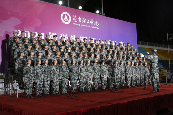 夜晚的帷幕才刚拉起,嘹亮的军歌就已响起。9月25日晚,2021级新生军训合唱比赛在体育场隆重举行。学校领导以及各单位负责人莅临现场观看了比赛,并担当此次比赛的评委。 评委席 比赛采取“红歌+自选歌曲”方式进行,各连队在唱完红歌后,进行自选歌曲的演唱。每一首歌都彰显了他们对祖国的热…
