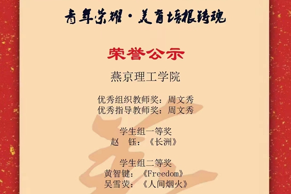 本网讯(传媒学院 张立言)近日,在第二届“青年荣耀·美育培根铸魂”新时代青少年作品展演活动中,传媒学院赵钰同学的作品《长洲》获得学生组一等奖,吴雪荧同学的作品《人间烟火》、黄智键同学的作品《Freedom》获得学生组二等奖,同时周文秀老师获得优秀组织教师奖和优秀指导教师奖。 主办…
