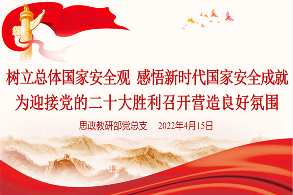 本网讯(思政教研部 刘志)4月15日,正值我国第七个全民国家安全教育日之际,我校思政教研部党总支书记赵见伟组织召开了以“树立总体国家安全观,感悟新时代国家安全成就,为迎接党的二十大胜利召开营造良好氛围”为主题的学习工作会议。 会议主题 会上,赵书记解读了《燕京理工学院关于组织开展…