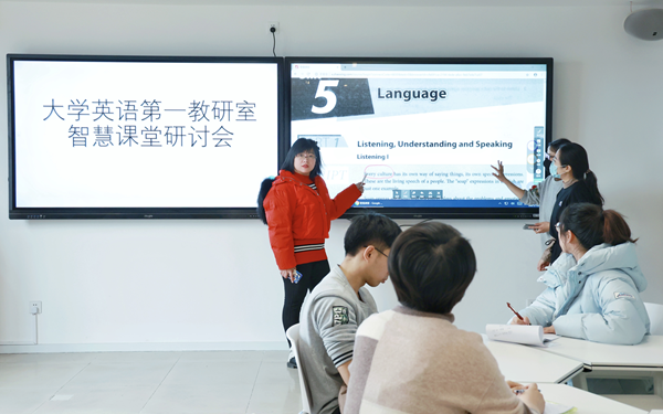 本网讯(大学英语第一教研室 李明伟)12月15日,文法学院大学英语第一教研室在国际学苑303召开了智慧课堂研讨交流会,研讨如何更加有效地使用智慧教室上好课,服务好学生。 英语老师在进行讲课示范 教师们群策群力,进行共享。张丽静老师结合自己的经验分享了智慧课堂的使用心得,…