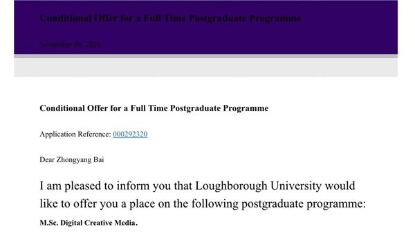 本网讯(传媒学院 张立言)近日,燕京理工传媒学院摄影专业1702班白忠洋同学,成功拿到了英国拉夫堡大学的录取通知书。 白忠洋录取通知书 拉夫堡大学位于郡莱斯特拉夫堡,具有“世界一流大学”之称。在拉夫堡大学的24个系、30个科研院所和研究中心中,教学质量和学生满意度均在全英大学排名…