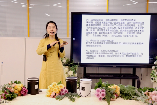 本网讯(国际教育学院 韦雅莉 李艳伟)11月18日,国际教育学院举办了花艺知识讲座暨插花技艺。本次活动邀请了国家高级花艺师朱明辉为学生们详解花艺知识及插花技艺。 朱明辉老师为学生讲解中式插花的发展 在朱明辉老师的讲解中,学生们了解到中式插花萌芽于先秦,经过后来各朝代的发展形成了传…