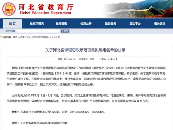 本网讯(艺术学院 王翠翠)近日,河北省教育厅公布了“课程思政示范项目”拟确定名单,艺术学院《造型基础》课程入选。 名单公示 习近平总书记在全国高校思想政治工作会议上指出:思想政治工作必须围绕学生、关照学生、服务学生。在高校教学过程中,要着重提高学生的思想觉悟和文化素养,使学生成为…