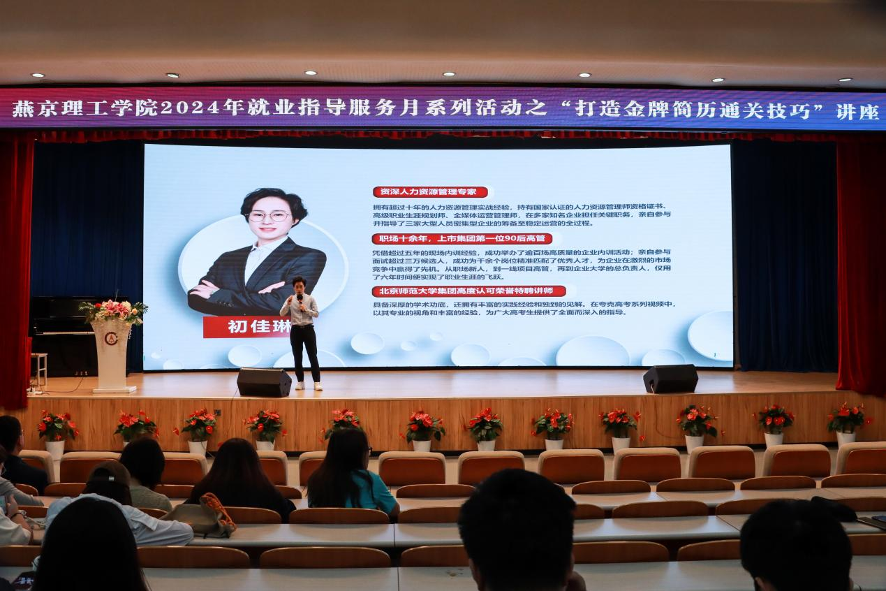 本网讯(就业指导与校企合作中心 宣传部 高丹 谷是瑾)求职是一种选择,简历就是第一印象。为帮助2025届毕业生更好地掌握简历撰写技巧,强化求职技能,提升求职能力。9月11日,我校特邀请校外知名就业指导专家初佳琳为同学们带来一场“打造金牌简历通关技巧”主题讲座。 讲座现场 讲座以“…