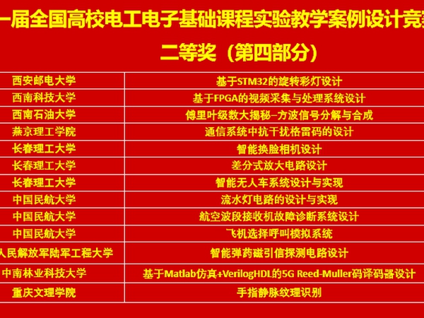 本网讯(信息科学与技术学院 万露)5月18日至19日,第十一届“鼎阳杯”全国高校电工电子基础课程实验教学案例设计竞赛全国决赛在中国人民解放军国防科技大学举行,来自全国各地高校的162个实验案例参加了此次决赛。经过激烈角逐,我校信息科学与技术学院电子信息工程专业的李卿教…