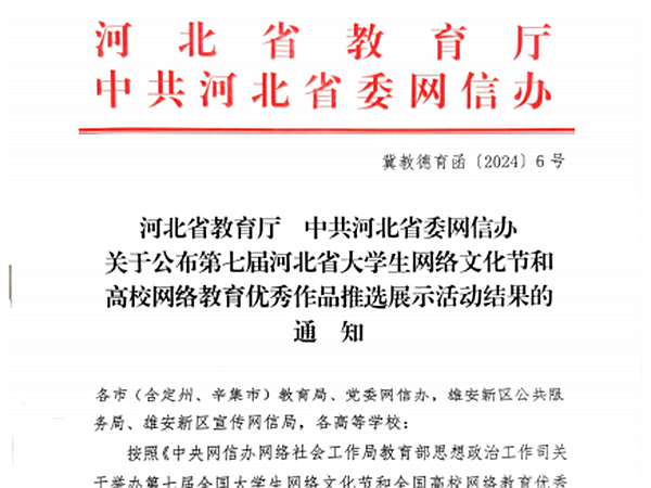 本网讯(宣传部 刘婷婷)近日,河北省教育厅、中共河北省委网信办发布了《关于公布第七届河北省大学生网络文化节和高校网络教育优秀作品推选展示活动结果的通知》,由学校宣传部付盛通老师指导的传媒学院摄影专业2214班何思达的作品《建木无桎》获得微电影类二等奖、《听见》获得微视频类三等奖,…