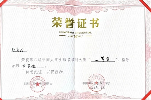 本网讯(艺术学院 吴羽珩)近日,第九届中国(深圳)国际时装节在广东深圳举行,本次模特大赛共有86所高等院校推荐,最终105位服装表演专业学生入围,在服装表演专业教师魏鸿宇、梁慧姣的共同指导下,我校服装表演专业赵育浛荣获全国女子组三等奖,吴羽珩荣获男子组“优秀奖”。 获奖证书 本次…