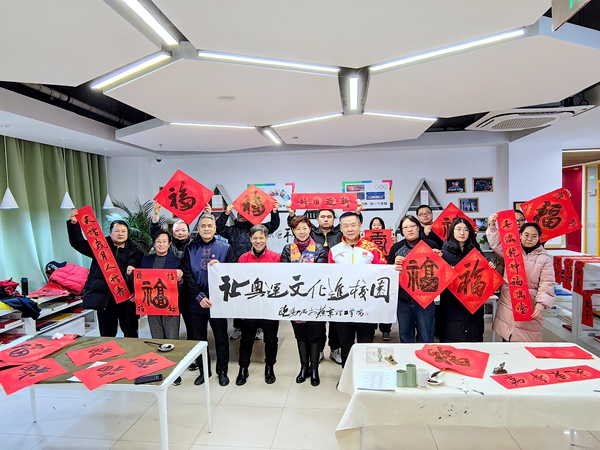 本网讯(图文信息中心 体育学院 赵雪梅 刘义芳)1月4日,时逢新春佳节之际,由贾国强、刘超英两名奥运火炬手和太极拳冠军王兰、军旅书法家何智旺组成的奥运火炬手书法家团队走进图书馆奥运图书坊和体育典藏馆,为教职工书写春联、送福字,送递新年祝福。 奥运火炬手书法家团队 奥运火…
