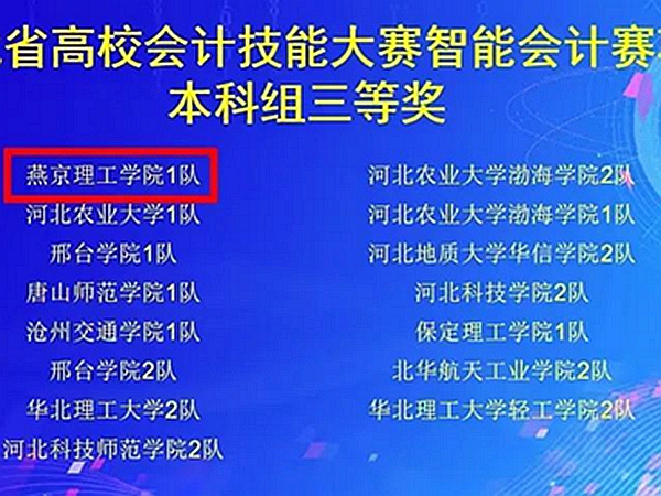 本网讯(国际商学院 李永佳 史晓娟)近日,国际商学院2021级财管学子李永佳、付来雨、纪静静和钱晓珏通过云竞赛的形式参加了河北省高校会计技能大赛智能会计赛项,并获三等奖佳绩。 获奖通知 为进一步加快培养和选拔管理型高技能人才,顺应数字经济时代发展的需要,全面…