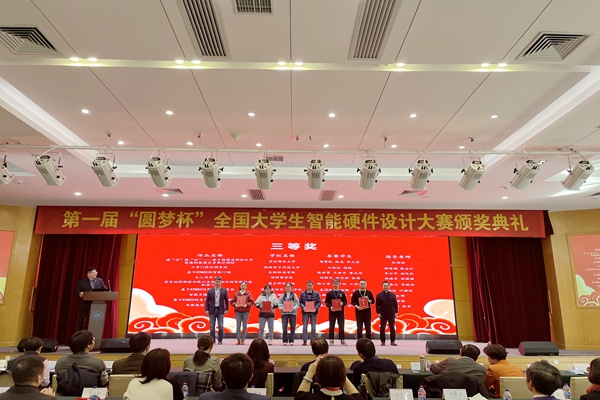 本网讯(信息科学与技术学院 薛乐研)2月25日,首届“圆梦杯”全国大学生智能硬件设计大赛在线上线下同步举行。信息科学与技术学院赵燕老师和张帝老师同获奖团队参加颁奖典礼。 获奖团队合影 首届“圆梦杯”全国大学生智能硬件设计大赛由中国电子学会主办,北京航空航天大学、深圳信息职业技术学…