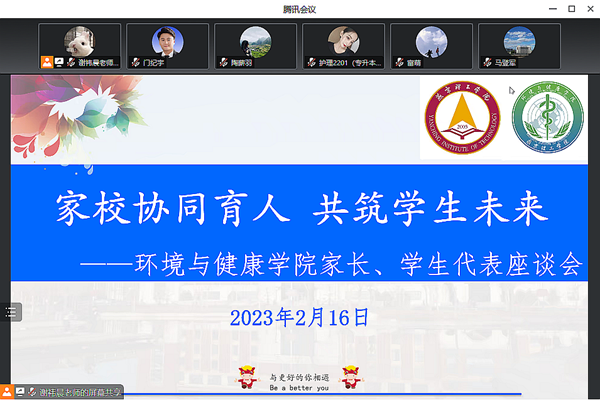 本网讯(环境与健康学院 陶薪羽)2月16日,环境与健康学院于腾讯会议线上召开家校协同育人·共筑学生未来座谈会。国际教育学院吴仲元院长、环境与健康学院院长马登军、党总支书记门纪宇、全体辅导员老师及学院部分优秀学子和学生家长参加了此次线上座谈会。 线上座谈会 马登军院长针对家校合作的…
