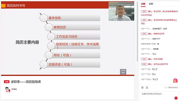 本网讯(就业指导与校企合作中心 李艳杰)学校2023届毕业生就业工作已经顺利开启,为满足毕业生求职需要,保证学生顺利就业、充分就业,学校特举办“云端就业服务月活动”,通过“云招聘”、“云宣讲”、“云讲座”等多种活动形式,助力2023届毕业生就业工作。 线上讲…