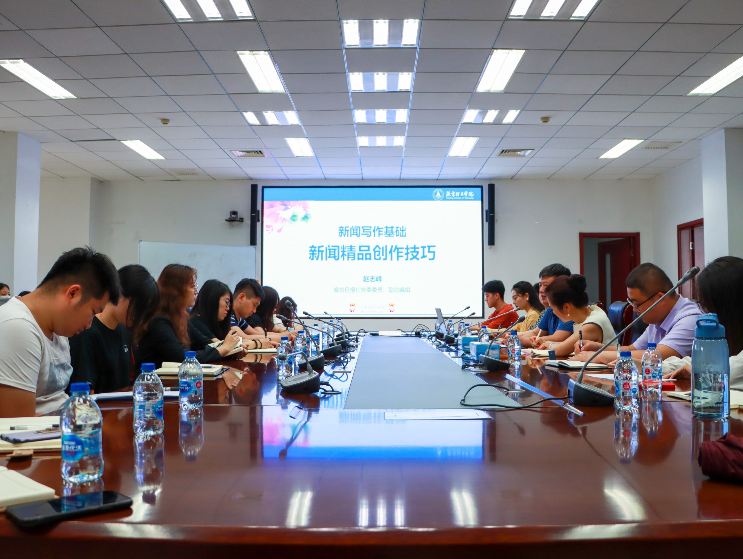 本网讯(校办 王晰燃)6月25日,燕京理工学院特邀廊坊日报社党委委员、副总编辑赵志峰于综合楼328会议室,开展了以“新闻写作基础 新闻精品创作技巧”为主题的宣传工作培训讲座。学校领导刘元园参与了活动。 宣传工作培训讲座现场 党委常务副书记、副校长刘元园对赵主编进行了介绍…
