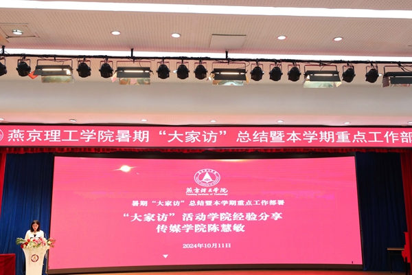 本网讯(学生处 王辰辰)为全面贯彻落实立德树人的根本任务,强化家校社协同育人的效能,10 月 11 日,燕京理工学院在报告厅召开暑期 “大家访” 总结暨本学期重点工作部署会议。党委副书记、副校长王传超,各二级学院主管学生工作的副院长、院长助理,全体辅导员以及学生处相关老师。 会议…