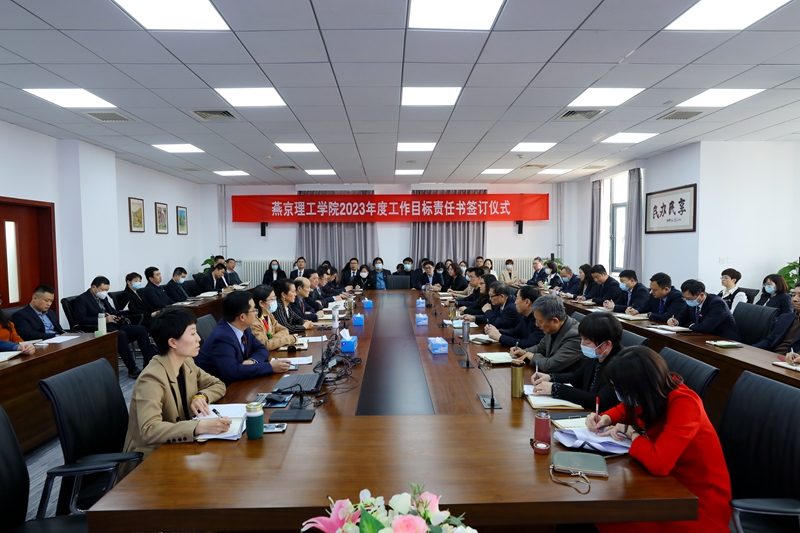 本网讯(人事处 学校办公室 李家曾 韩冰 付盛通 谷是瑾)3月7日,燕京理工学院2023年度工作目标责任书签订仪式在综合办公楼428会议室举行。学校领导杨庚宇、朱代春、刘元园、王传超、吴汶燕、宋伟、吴敏、赵鹏和全体中层干部参加了会议。会议由校长杨庚宇主持。 会议现场 举…