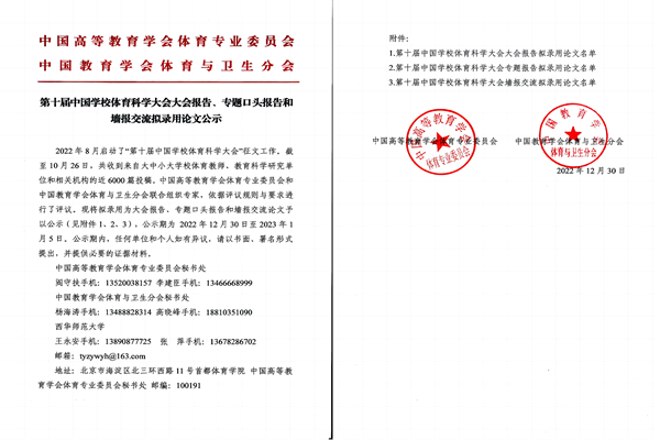 本网讯(体育学院王坤)为更好的响应“科教兴国,人才强国”战略,营造良好的学术氛围,加强学术交流,提高我校师生的科研水平,燕京理工学院体育学院组织教师参加由中国教育学会主办,西华大学承办的第十届中国学校体育科学大会。本次论文征集历时四个月,共收到来全国学校体育教师、教育科学研究单位…