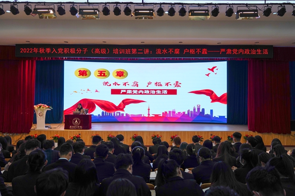 本网讯(党委办公室 申鑫雨 金志成)10月19日,燕京理工学院2022年秋季入党积极分子(高级)培训班第二讲在报告厅如期举行,此次培训的主题为《流水不腐,户枢不蠹——严肃党内政治生活》,由党委委员、副校长吴汶燕主讲。 培训会现场 吴汶燕副校长通过对“流水不腐,户枢不蠹”的解读,引…