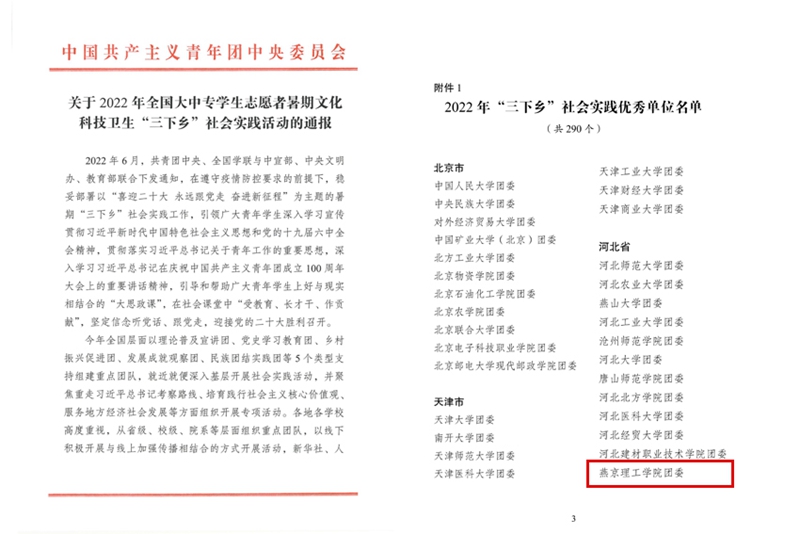 本网讯(团委 学生处 王奥然 王欣钰)10月11日,共青团中央青年发展部发布《关于2022年全国大中专学生志愿者暑期文化科技卫生“三下乡”社会实践活动的通报》,燕京理工学院团委获评2022年“三下乡”社会实践优秀单位。 获奖截图 学校团委十分重视学生实践能力的培养,将暑期社会实践…