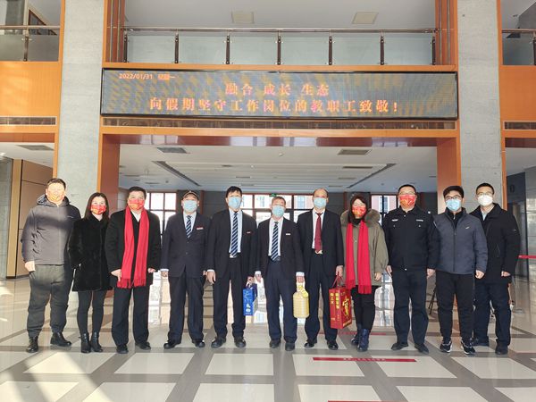 本网讯(校办公室 李娟 赵树金 )福瑞迎春,虎报吉祥。1月31日,除夕佳节,校长杨庚宇、副校长吴汶燕在学校办公室、学生处、安全处、后勤资产处、图文信息中心等相关负责人陪同下,看望慰问了春节期间坚守岗位的值班人员,给他们送去了诚挚的新春祝福,并与值班人员共聚一堂…