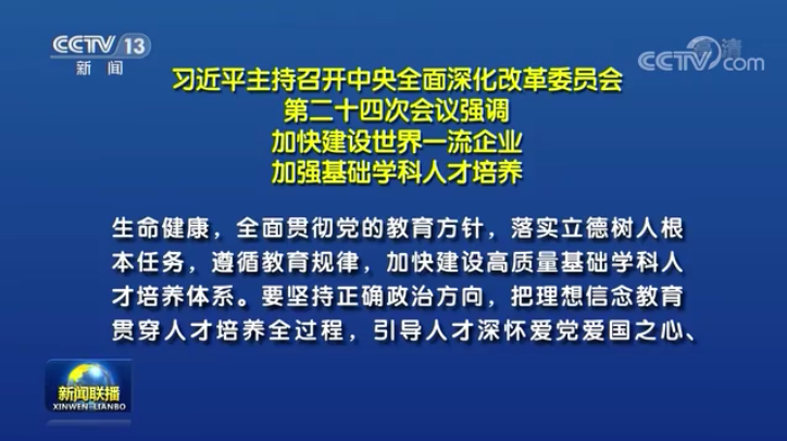 习近平主持召开中央全面深化改革委员会第二十四次会议强调 加快建设世界一流企业 加强基础学科人才培养 (2022年2月28日) 习近平在主持会议时强调,要坚持党的全面领导,发展更高水平的社会主义市场经济,毫不动摇巩固和发展公有制经济,毫不动摇鼓励、支持和引导非公有制经济发展,加快建…