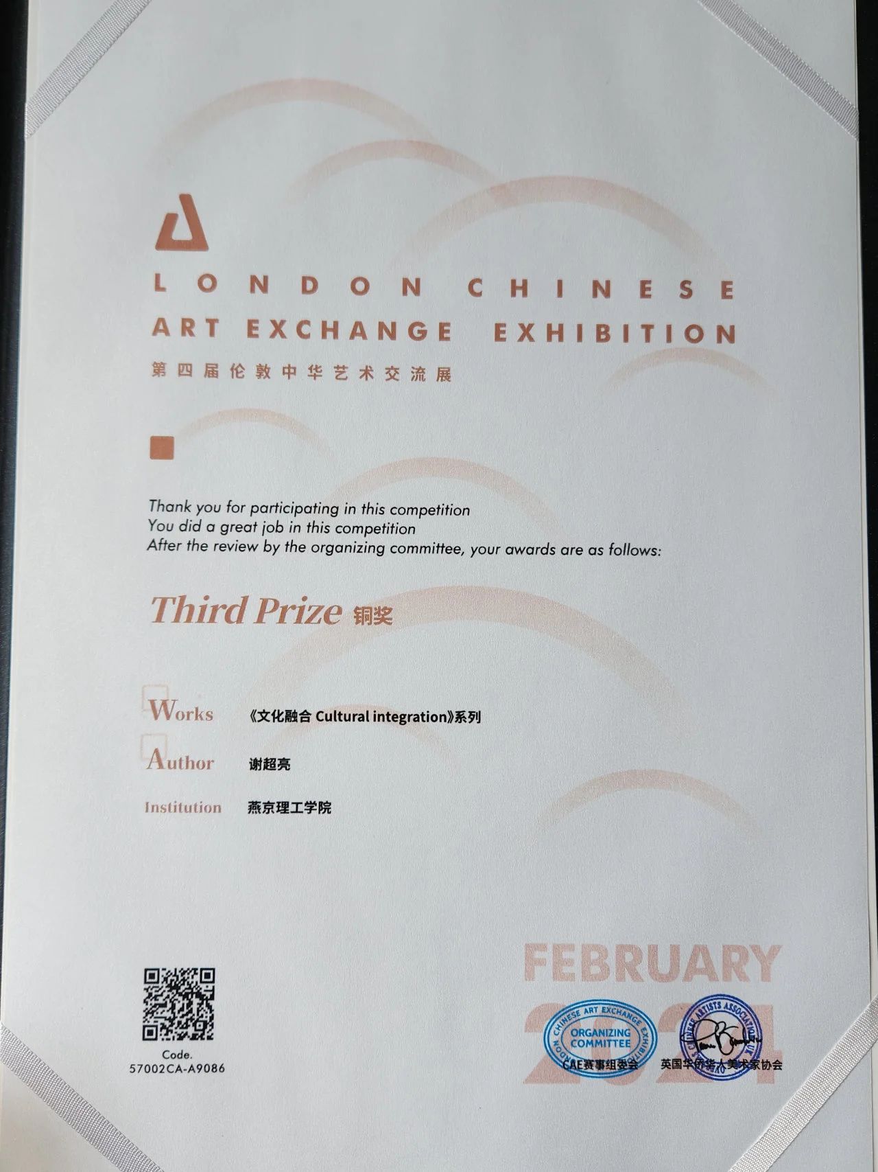 喜报!传媒学子的作品《文化融合cultural integration》荣获第四届伦敦中华交流展铜奖!