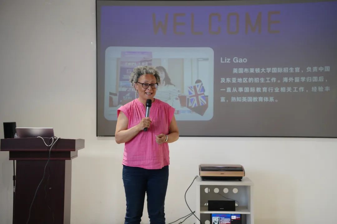 会议伊始,美国布莱顿大学国际招生官Liz Gao向传媒学院学生介绍了布莱顿大学的背景、地理位置以及宿舍等基本情况。