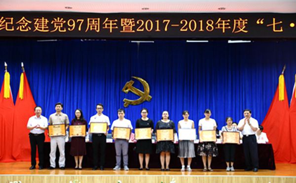 党委常务副书记、副校长刘元园在会上宣读了2017-2018年度优秀共产党员、优秀党务工作者和先进基层党组织的表彰决定。经各党支部、各党总支自下而上层层评选推荐,学校评审小组讨论通过,学校党委对31名优秀共产党员、10名优秀党务工作者、9个先进党支部和3个先进党总支进行了表彰。