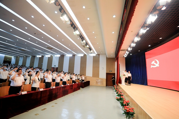 在庆祝中国共产党成立101周年、喜迎党的二十大胜利召开之际,大会组织新党员宣誓、老党员重温誓词。党委委员、组织部长张传凤领誓。铮铮誓言,重忆入党初心,这既是忠诚承诺,更是责任担当,激励着广大党员在学习、工作和生活中发挥先锋模范作用,做新时代合格的共产党员。