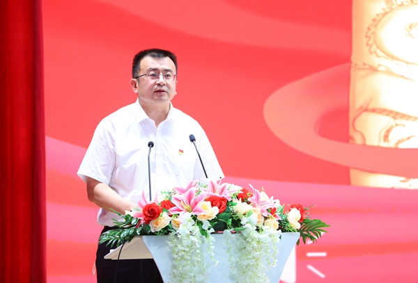 党委书记朱代春发表讲话。他首先代表学校党委,向受到表彰的先进集体和先进个人表示热烈的祝贺,向全校广大党员致以诚挚的问候,希望全校共产党员认真向他们学习,在各自的岗位上进一步作示范、勇争先、创佳绩,以更强的责任担当、更实的工作举措,抓作风树形象、抓创新求突破,为学校高质量发展提供组织保证。