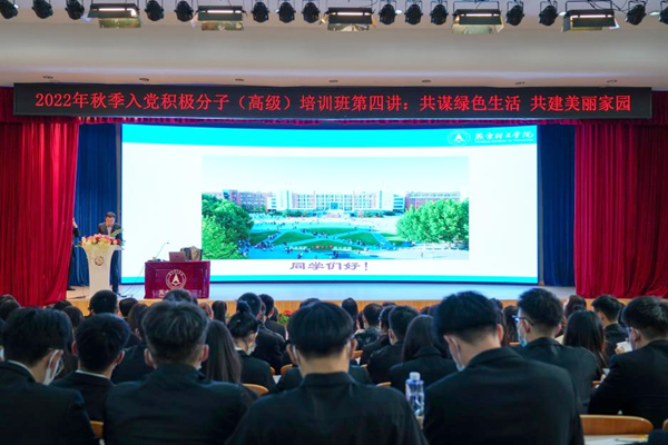 本网讯(党委办公室 张雨 金志成)2022年11月2日,燕京理工学院2022年秋季入党积极分子(高级)培训班第四讲在学校报告厅举行,此次培训的主题为:《共谋绿色生活,共建美丽家园》,由燕京理工学院校长杨庚宇主讲。