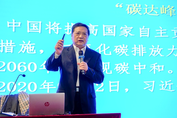 杨校长通过党的二十大报告中第十部分“推动绿色发展,促进人与自然和谐共生”以及“碳达峰,碳中和”热门话题引入本次的课程培训。