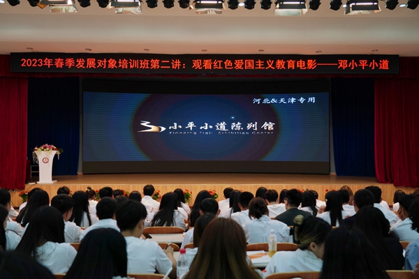 本网讯(党委办公室 郭雯 申鑫雨 王蒙蒙 侯芊羽) 2023年5月17日,燕京理工学院党校2023年春季入党积极分子(高级)培训班第二讲在报告厅如期举行,本次培训内容是观看红色爱国主义教育电影《邓小平小道》,2023年春季发展对象培训班全体学员参与了本次培训。