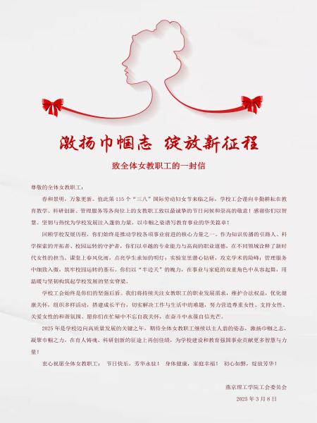 激扬巾帼志 绽放新征程 致全体女教职工的一封信