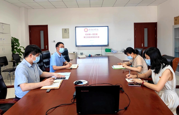本网讯(发展规划处 张玲)2022年6月2日下午14:00,机关第一党总支第三党支部在综合办公楼412召开党员大会。会议由第三党支部书记霍德才主持,第三党支部全体党员通过线上线下方式参会。