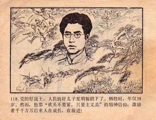 夏明翰被捕后,连续受到刑讯,他在拷打中只是怒斥审判官。回到牢房,他知生命将要结束,忍着伤痛用半截铅笔给母亲、妻子、大姐分别写了三封信。在给妻子郑家钧的信上,他还留下了一个带血迹的吻印。被捕两天后即1928年3月20日的清晨,夏明翰被带到汉口余记里刑场。执行官问他有无遗言,他大喝道:“有,给我纸笔来!”接着,他挥笔写下了“砍头不要紧”的就义诗。这一正气凛然的词句,当时就被人称做热血谱写的革命战歌,激励了无数后人为之奋斗。