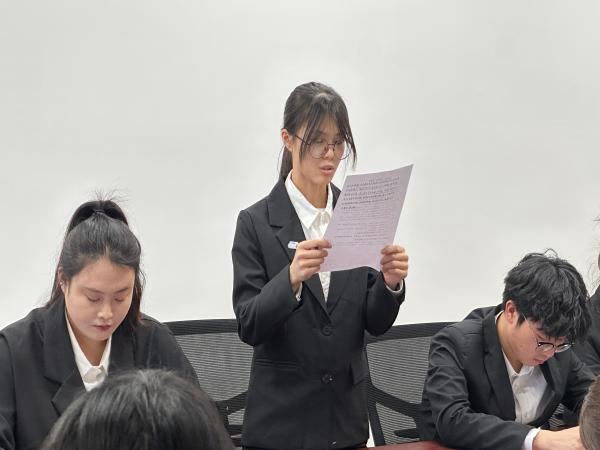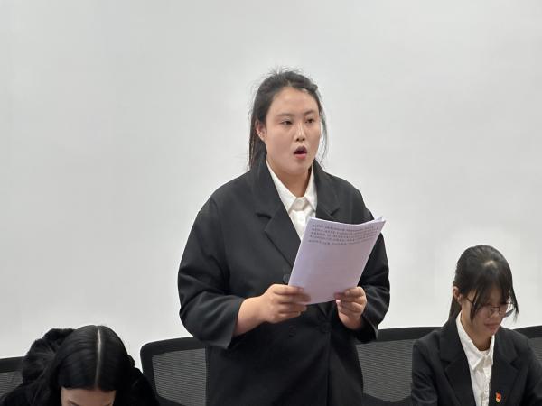 燕京理工学院人文教育学院学生党员赵倩男宣读考试考场纪律,全体学生党员、积极分子认真聆听,进一步强化学生考场纪律意识,为构建良好学风与考风筑牢根基。