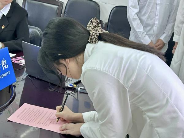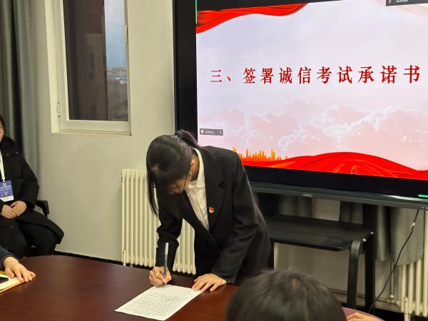 学生党员、积极分子签署期末考试诚信承诺书。他们以笔为誓,将诚信应考的决心与信心落于纸面,用实际行动践行考试规范,展现良好精神风貌。