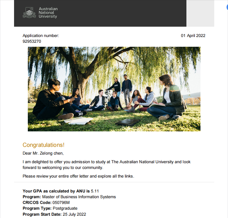从左至右依次为澳大利亚国立大学、悉尼大学、昆士兰大学和莫纳什大学offer