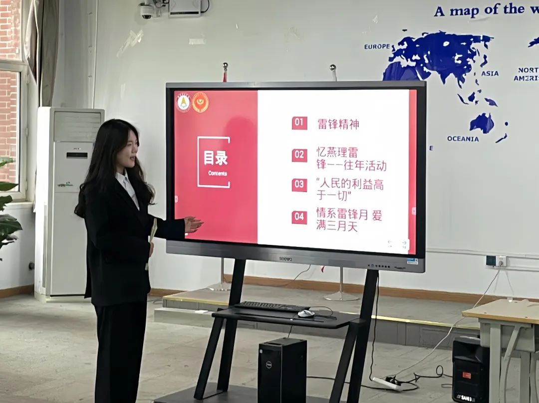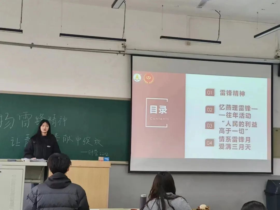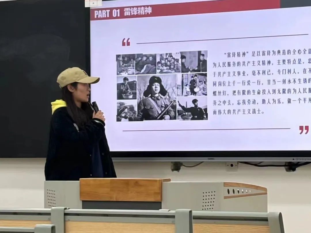 各班团支书还以放映PPT的形式开展了雷锋精神主题宣讲会,通过讲解PPT主要介绍了雷锋精神的思想和内涵,“雷锋精神”是以雷锋为典范的全心全意为人民服务的共产主义精神。同学们畅所欲言,积极发表自己对于“雷锋精神”的深刻理解。广大团员和青年要像革命前辈和英雄模范那样有着为人民的利益不怕吃亏、不怕牺牲的精神;要处处关心集体,培养集体主义思想;要热爱人民、尊敬人民、珍惜人民的劳动成果,学习人民的优良品德。这些要求也正是雷锋精神内涵的集中体现,指引着广大团员和青年要以实际行动学习雷锋精神,践行雷锋精神,把雷锋精神代代传承下去。