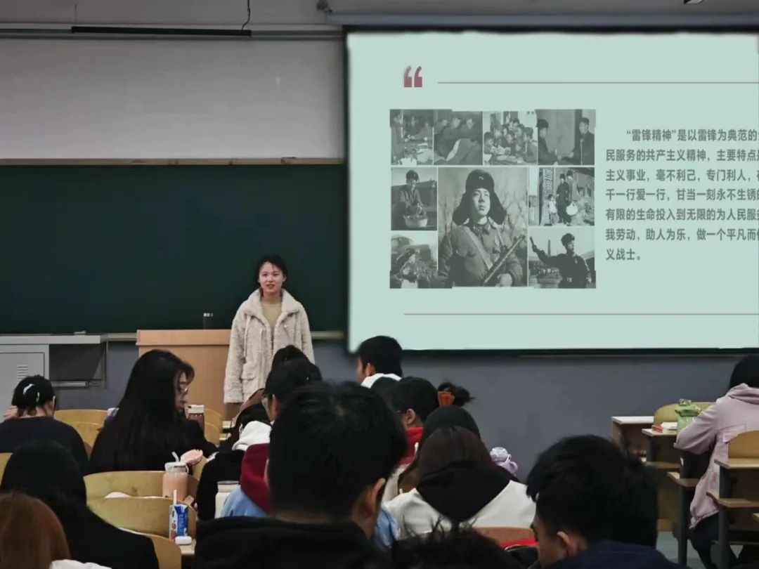 为深入贯彻落实习近平新时代中国特色社会主义思想,培育和践行社会主义核心价值观,国际商学院举行了“弘扬雷锋精神,让青春在奉献中绽放”主题团日活动。各班级团支书通过组织同学们进行研讨会、宣讲会两种形式,帮助同学们深入学习和传承雷锋精神,激励青年一代在无私奉献中绽放他们的青春光彩。此次主题团日活动的目的是通过学习雷锋同志的先进事迹,激发广大青年的服务意识和奉献精神,引导大家在新时代的征程中,用实际行动书写青春华章,展现新时代青年的责任与担当。