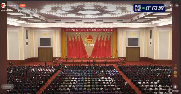 “我们生在红旗下,长在春风里,目光所至皆为华夏,五星闪耀皆为信仰。”青春的模样,就是中国的模样。实现中国梦是一场历史接力赛,这场庆祝建团百年的大会,既是青年一代向历史的致敬,更是向未来的宣誓。青春心向党,百年再启航。当代青年要牢记党的教诲,立志民族复兴,不负韶华,不负时代,不负人民,在青春的赛道上奋力奔跑,争取跑出当代青年的最好成绩!